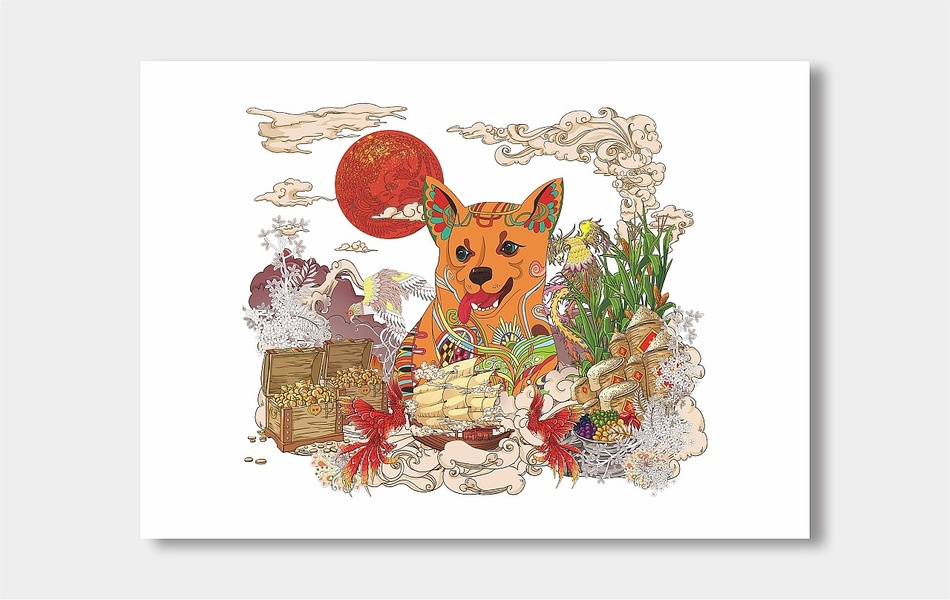 和服柯基插画