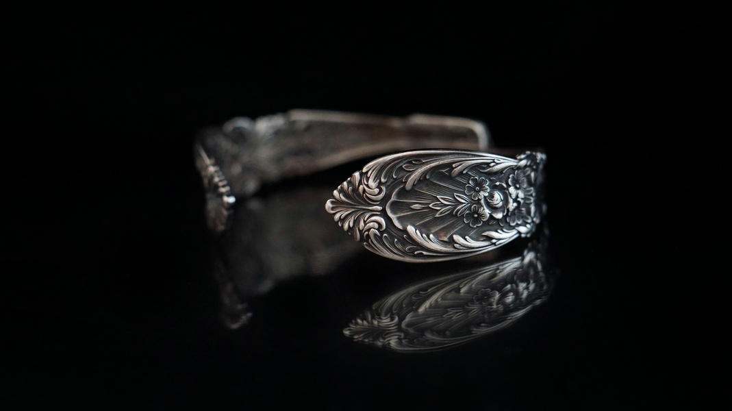 【黎塞留花卉古董银勺Vintage中古手镯】
