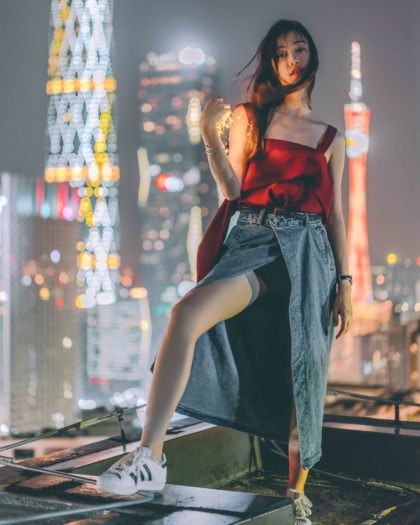 夜景人像 | 猎德大桥上的风