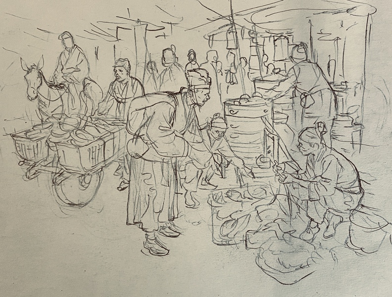 钢笔淡彩写生