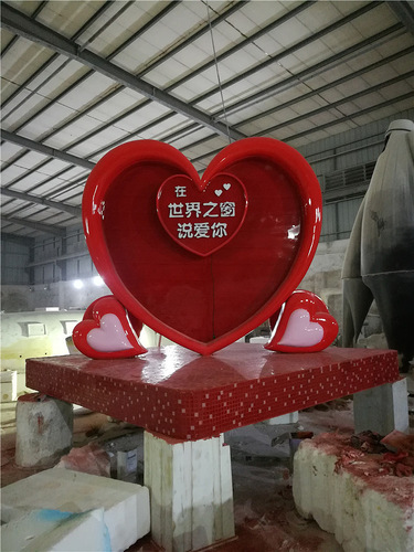 玻璃钢心形雕塑世界之窗形象摆件玻璃钢爱心模型摆件