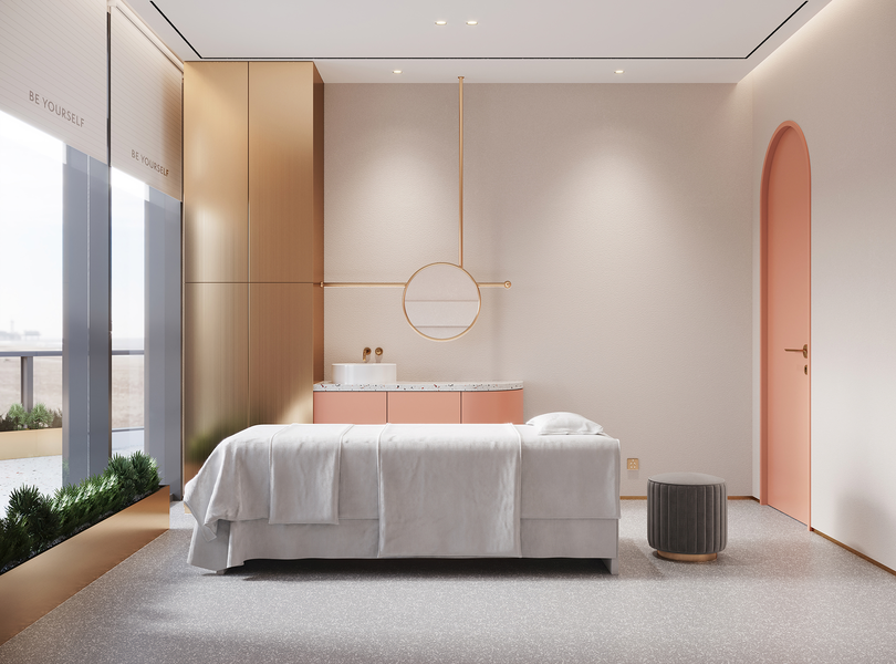 从视觉到情绪:「裸粉柔弧」美容院的松弛感营造方案