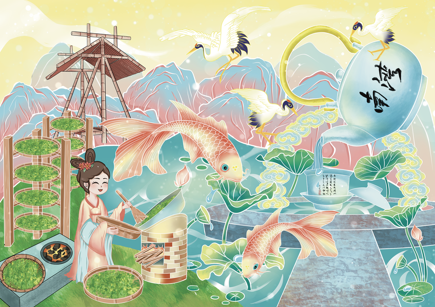 茶文化国潮手绘