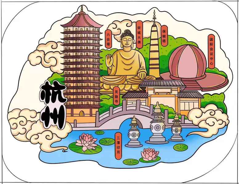 苏杭之美 城市冰箱贴
