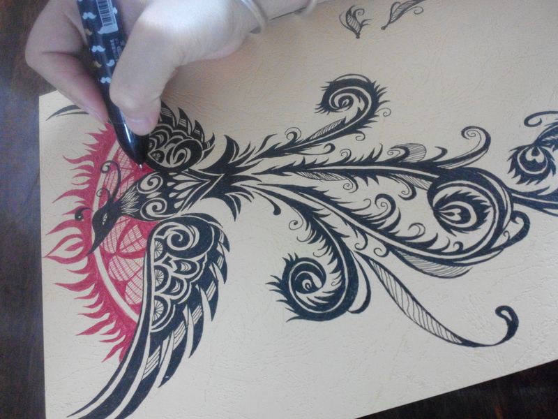 凤凰 涅槃 纹身 线条