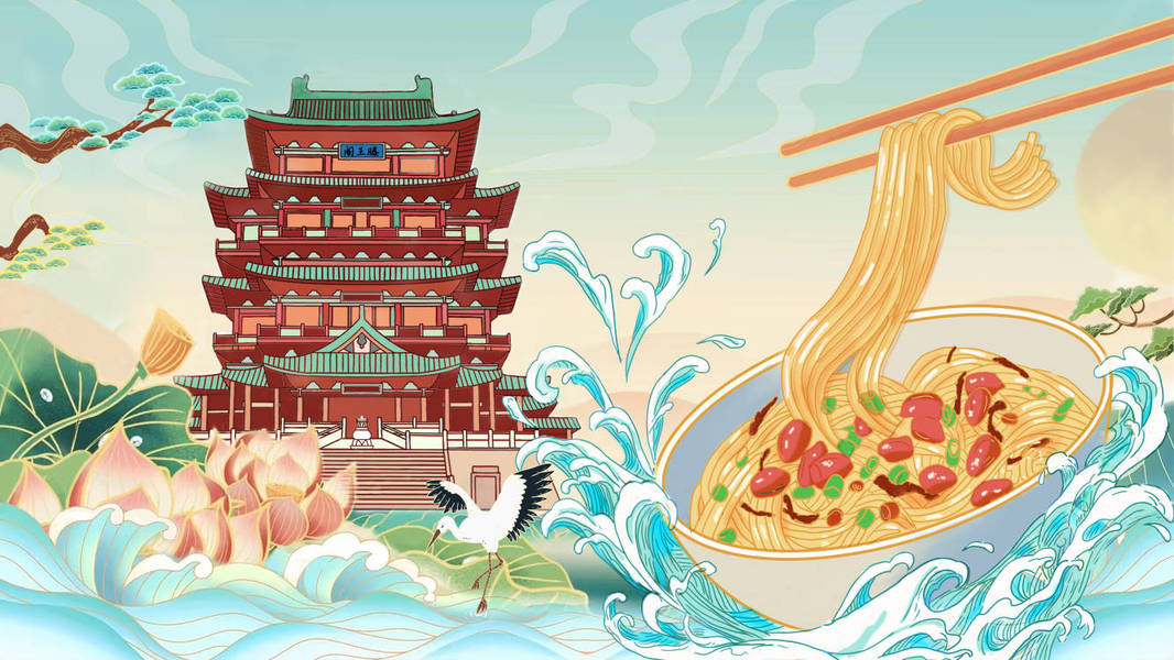 江西南昌拌粉文创插画