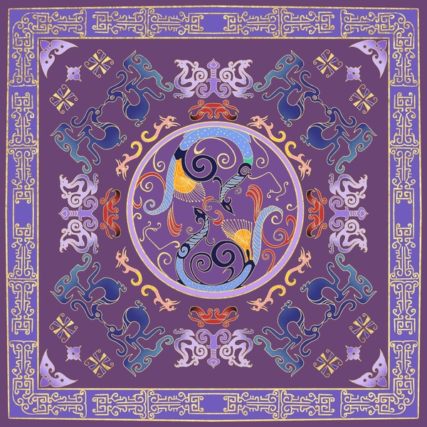 十二生肖x云肩 丝巾 纹样设计
