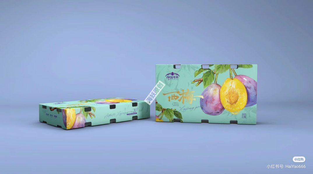 {原创}西梅水果农产品包装礼盒手绘插画设计
