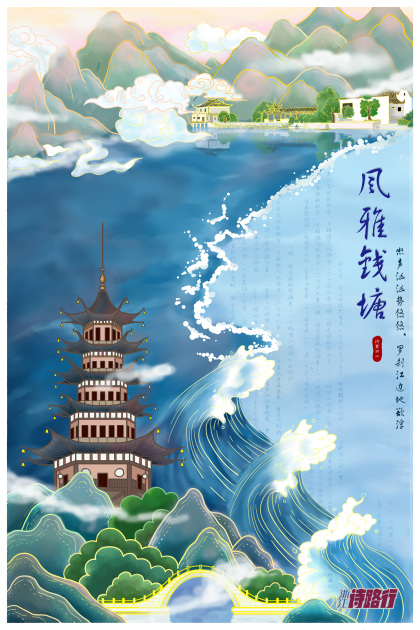 Q版华夏旅游明信片插画系列(浙江)