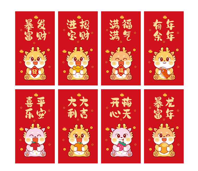 小飞龙红包龙年红包生肖红包新年红包设计插画