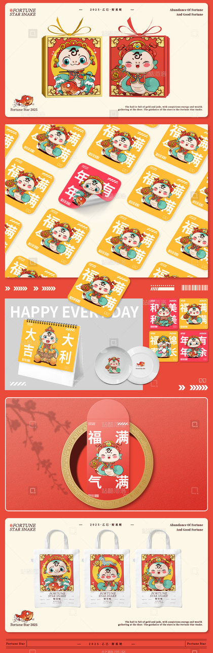 《乙巳蛇年 | 财星蛇》可爱潮酷 文创包装插画