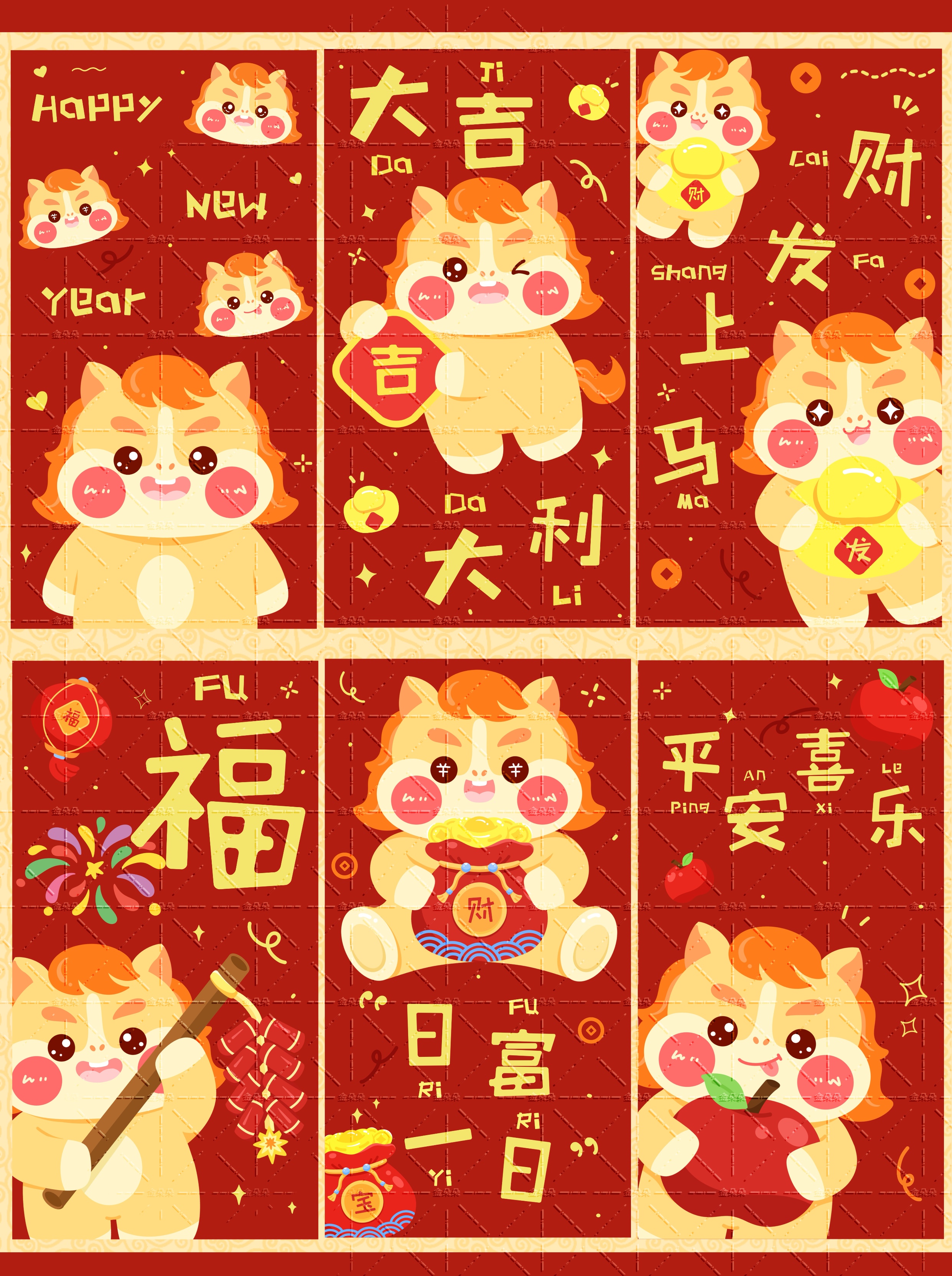 马年插画新年红包封面利是封冰箱贴图案设计