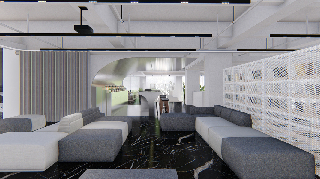 效果图代画工业风接待大堂