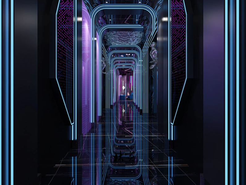 工装|商业空间设计|科技感|KTV|过道|包间