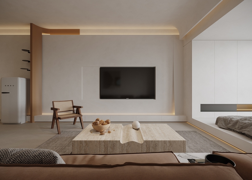 现代极简奶油风单身公寓设计