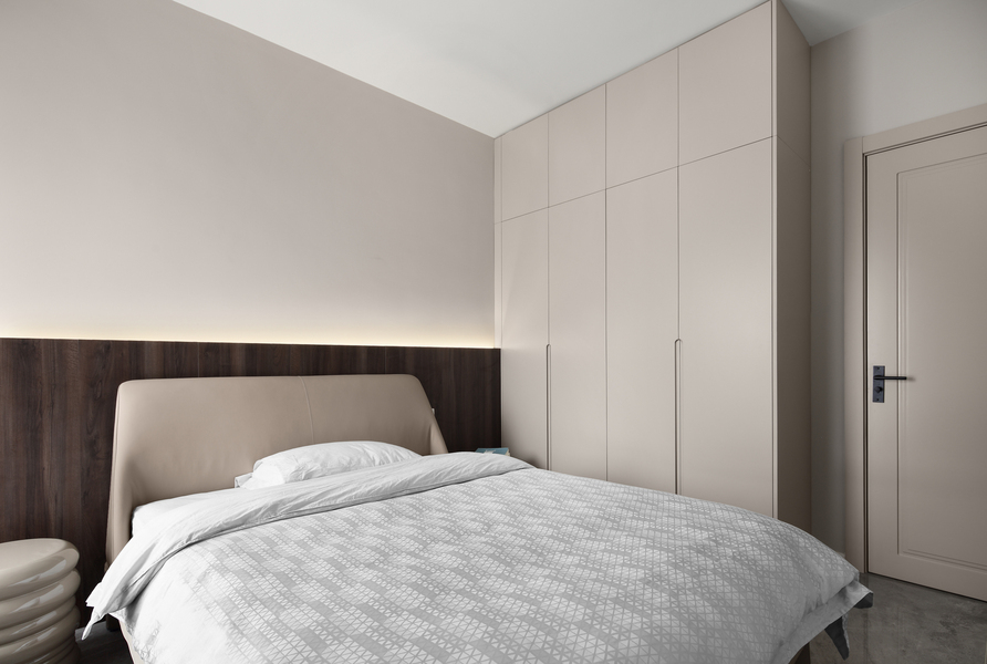 浅灰与原木设计,营造103m²三室一厅静谧感十足居所
