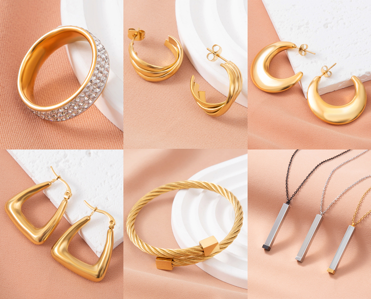 红色背景金色系列首饰