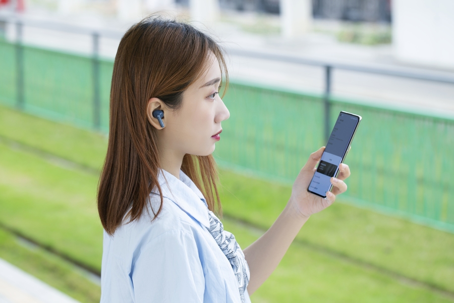 OPPO Enco X蓝色外拍图赏 模特:叶子