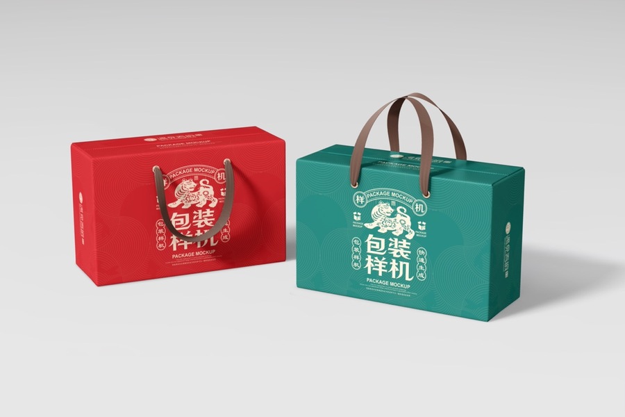 中国风国潮文创手提绳屋顶盒样机包装样机