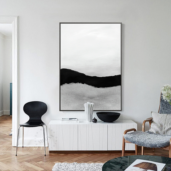 新中式装饰画-中国风手绘黑白意境水墨山水画