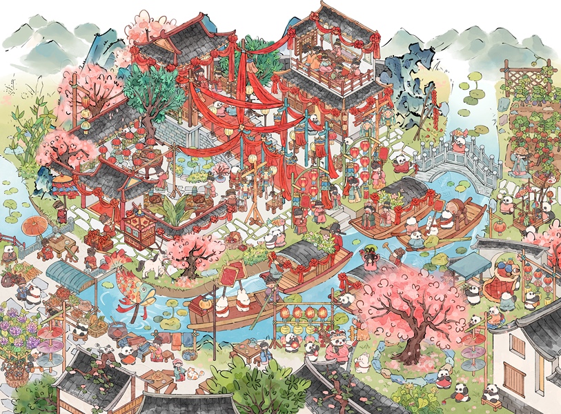 原创插画|清明上河兔|治愈系国风插画