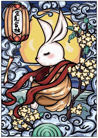 中秋玉兔国潮插画