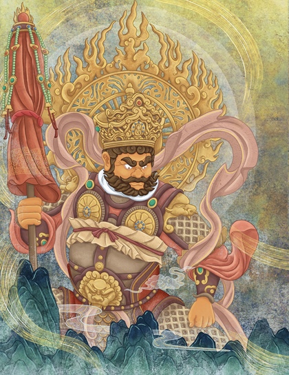 四大天王 岩彩插画