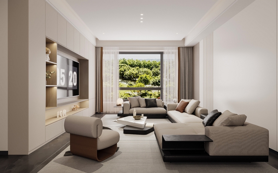 客厅现代简约效果图表现