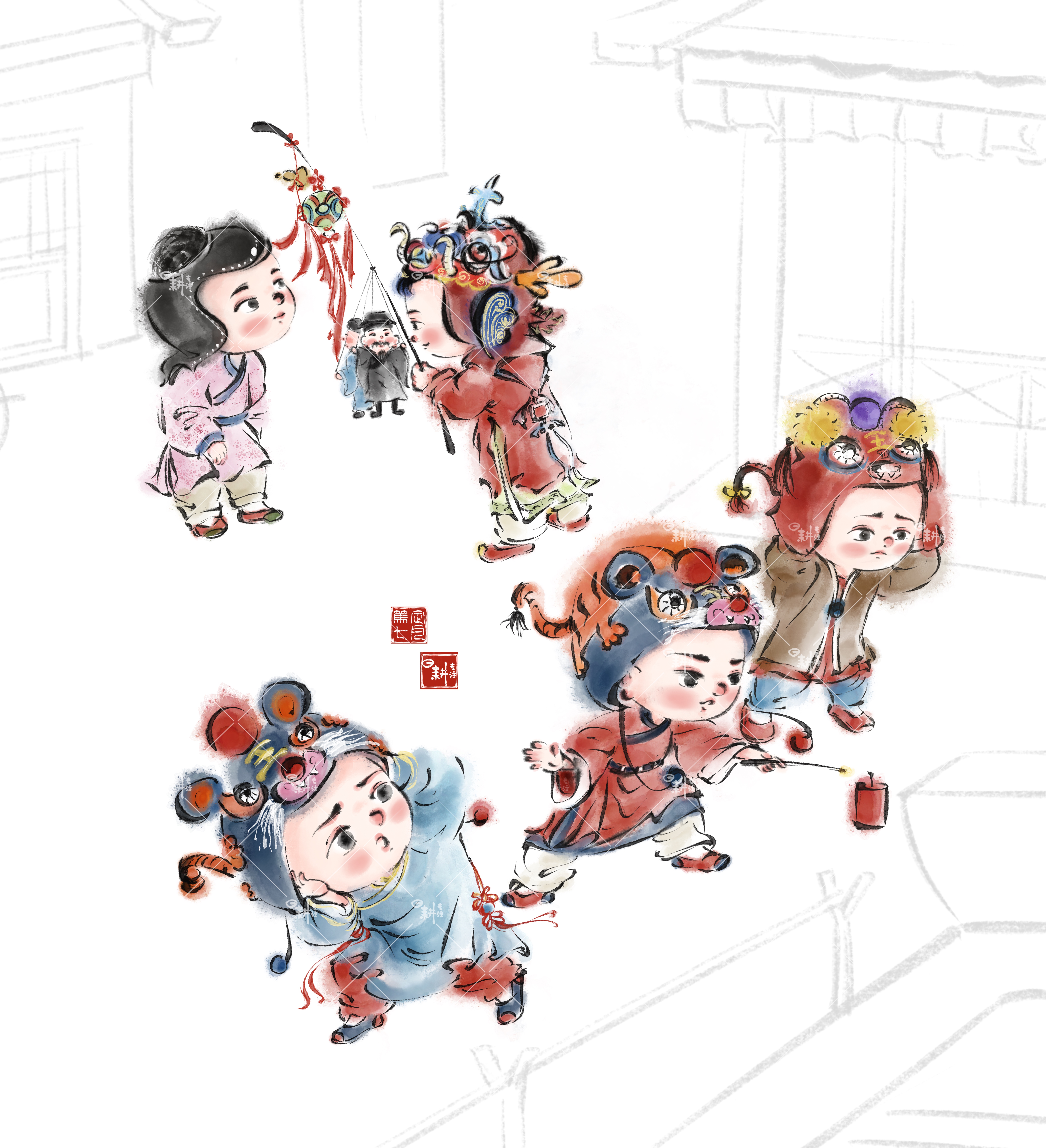 春节传统插画