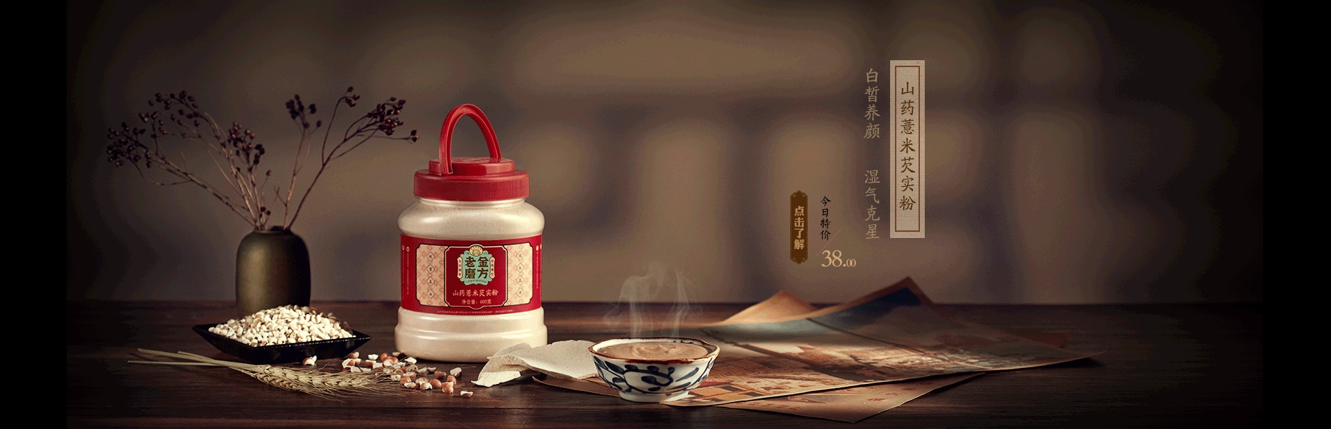 (老金磨方)民国 手绘风 五谷粉粉类目首页