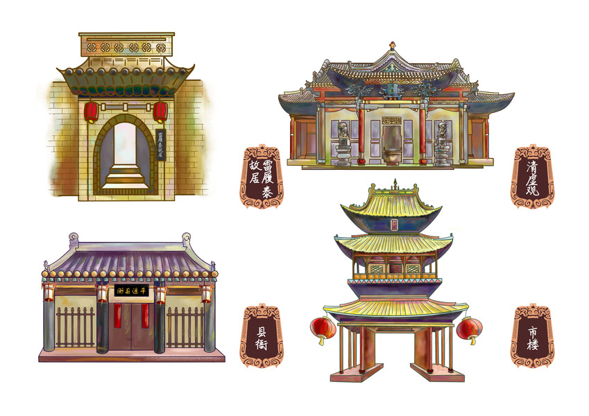 平遥古城景点扁平化图标