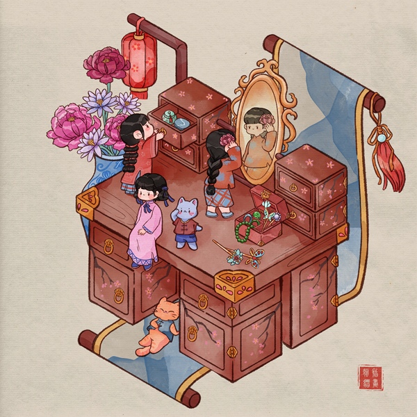 古风插画|仕女“游春园之美妆”|原创插画