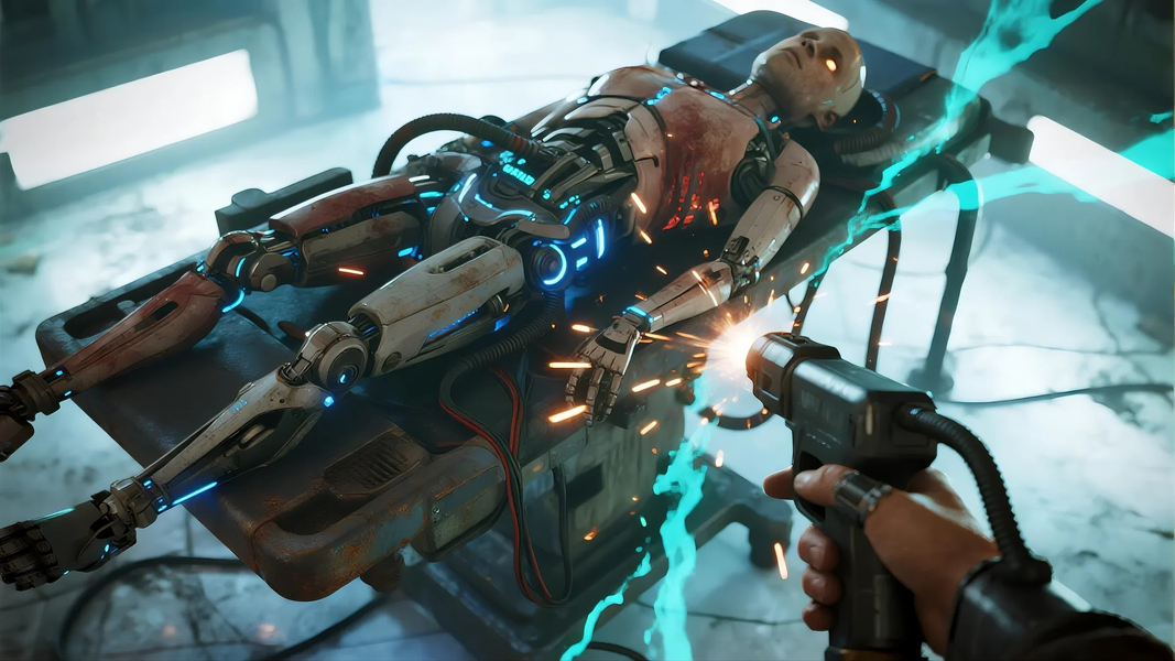 智能机械臂在工厂车间工作的艺术感场景