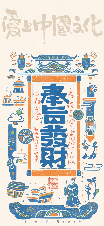 自言字语 —— 一组手写毛笔字,古风版画风格