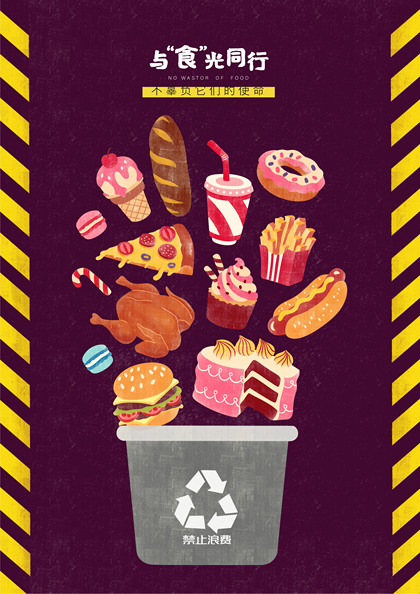 光盘行动节约粮食公益海报小女孩吃饭幼儿园